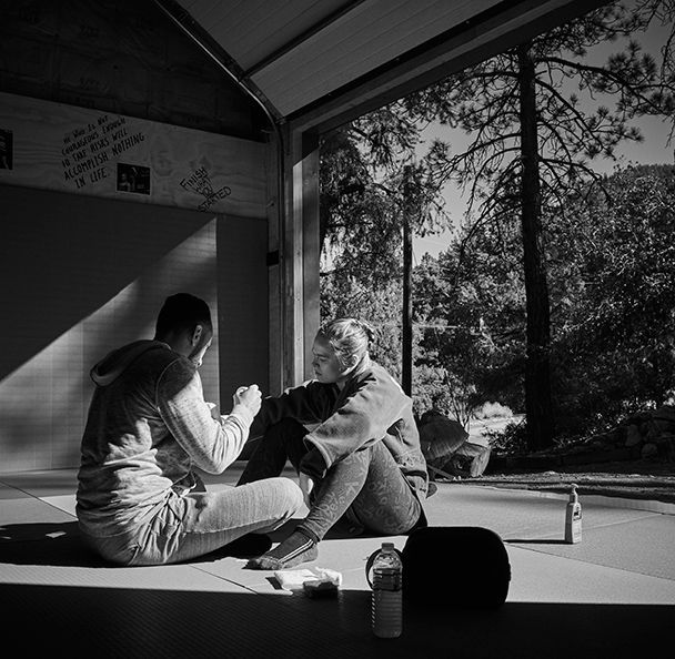 "She's probably armbarred me 200 times, and no two of them have been the same," Manly says as they begin today's session. "You can't set for it because her transitions are always different."
